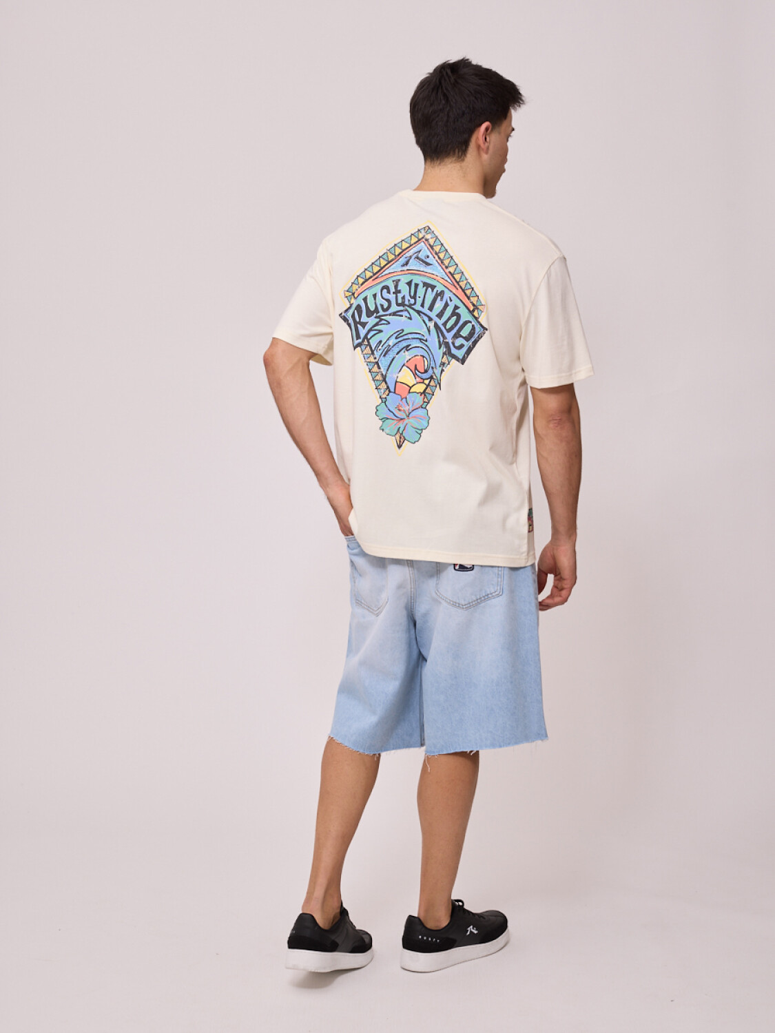 REMERA LAVADA DE HOMBRE CON ESTAMPADO DELANTERO Y TRASERO